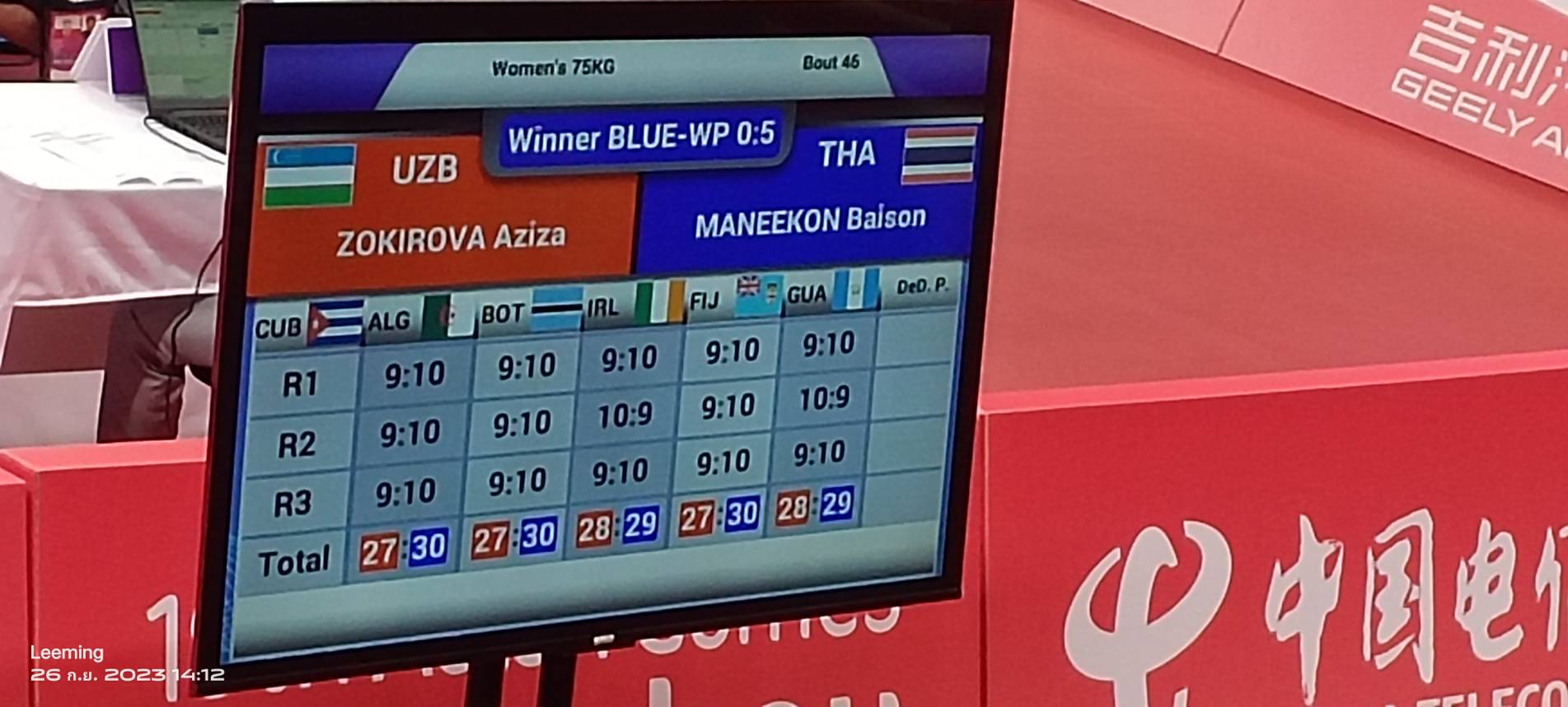การแข่งขันมวยสากลสมัครเล่นในเอเชี่ยนเกมส์ ครั้งที่ 19 ระหว่าง วันที่ 23 ก.ย.- 9 ต.ค.2566 ที่เมืองหางโจว ประเทศสาธารณรัฐประชาชนจีน ล่าสุดเมื่อช่วงบ่าย วันที่ 26 ก.ย. 2566 มีนักชกสาวไทยแข่งขัน 1 คู่ รุ่น 75 กก. (หญิง) ใบสน มณีก้อน ดีกรีเหรียญเงินชิงแชมป์เอเชียล่าสุด ที่จอร์แดน พบ อซิซ่า โซกิโรว่า นักชกอุซเบกิสถาน ผลปรากฎว่า ใบสนทำได้ดีกว่า ออกหมัดได้จะแจ้งเป็นฝ่ายชนะคะแนน 5-0 ผ่านเข้ารอบก่อนรองชนะเลิศ พบ เอ็งบาตาร์ เออร์เดนตูย่า นักชกจอมเก๋าจากมองโกเลีย ในวันที่ 30 ก.ย.นี้