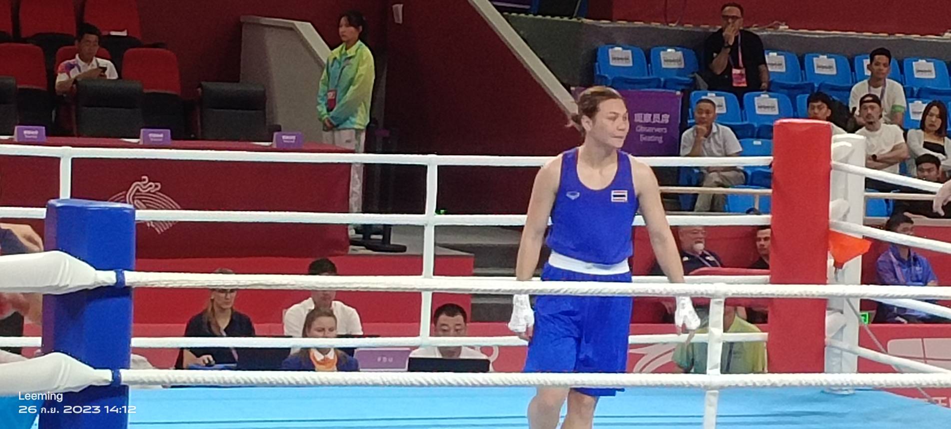 หลังการชกนักชกสาวจากกาฬสินธ์ กล่าวว่าแมตช์วันนี้ไม่ตื่นเต้นเท่าไหร่ เริ่มปรับตัวได้ ช่วงแรกต่อยยากเพราะคู่ต่อสู้เป็นมวยซ้าย แต่พอจับจังหวะได้ ก็ไม่ยากและใช้ประสบการณ์ที่เหนือกว่า เอาชนะไปได้ในที่สุด ส่วนรอบ 8 คน เจอกับนักชกมองโกเลีย เคยเจอชนะมาแล้วในรายการชิงแชมป์เอเชียที่จอร์แดน แต่จะประมาทไม่ได้ เพราะเขาปล่อยน้ำหนักตัวขึ้นมาด้วย มาชกรุ่นเดียวกัน คือรุ่น 75 กก.แต่เขาตัวเล็กกว่า