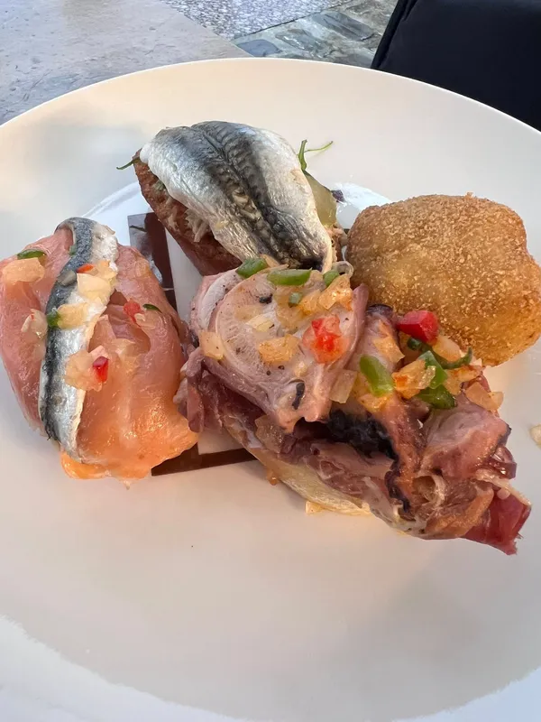 ส่วนอาหาร...พอเข้าใจได้ ไปท้องถิ่นไหนเราจะเจออาหารถิ่นนั้นเป็นหลัก ถ้าไม่ใช่ จะหากินยาก เอาจริงๆอย่างหลายคนถามถึง paella ข้าวผัดสเปน มาแคว้นบาสค์ ยากหน่อยเพราะที่นี่ขึ้นชื่อเรื่อง pintxos(ปินโชส) เป็นไม้เสียบ จิ้มๆ หลากหลายเมนู ทั้งเนื้อสัตว์และผัก ผมชอบปินโชสที่มี ปลาอันโชวี ดอง กับมะกอก ทานได้เป็นสิบไม้ นึกภาพไก่ย่างเสียบแล้วมีสัปประรด อะไรประมาณนั้น หรือทำเป็นขนมปังเล็กๆพอดีคำ ซึ่งทางใต้ คือ ทาปาสอันนี้เจ้าถิ่นบอกผมเองนะครับว่าถ้ามาที่นี่ต้อง ปินโชส ถ้าอยากกิน ปาเอย่า ต้องไป บาร์เซโลนา,บาเลนเซีย, มาดริดโน่น เหมือนเราอยากกินแกงฮังเล, ข้าวซอยแบบจ๊าบๆต้องภาคเหนือเรา คหสต...ผมกินอาหารได้ทุกชาติ ดังนั้น ปินโชส คือหนึ่งในดวงใจ มาแคว้นบาสค์ต้องไม่พลาด