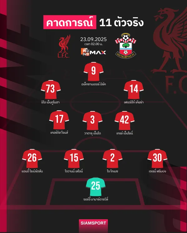 ลิเวอร์พูล แชมป์และจ่าฝูง พรีเมียร์ลีก มีคิวลงเล่นเกม คาราบาว คัพ รอบสามรับการมาเยือนของ เซาธ์แฮมป์ตัน ในวันอังคารนี้ (23 ก.ย.)