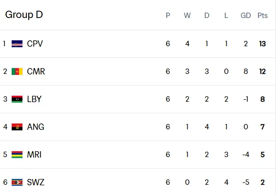 กลุ่ม D ของรอบคัดเลือกโซนแอฟริกา เคปเวิร์ดนำจ่าฝูงแบบหักปากกาเซียน แข่ง 6 นัด ชนะ 4 เสมอ 1 แพ้ 1 เก็บได้ 13 แต้ม นำหน้า แคเมอรูน, ลิเบีย และแองโกลา โดยโปรแกรมที่เหลือพวกเขายังได้เล่นในบ้านเจอกับคู่แข่งสำคัญอย่างแคเมอรูน ซึ่งอาจกลายเป็น "นัดประวัติศาสตร์"