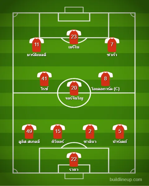 - แนวรุก : บูคาโย ซาก้า, มิเกล เมรีโน, กาเบรียล มาร์ติเนลลี