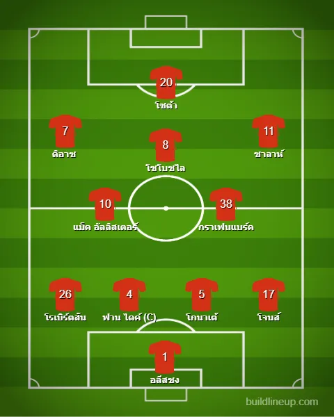 ถึงแม้ยิงให้ ลิเวอร์พูล ไม่ได้มาสามเกมติด แต่ ซาลาห์ ก็ยังมีความสำคัญมากๆ ต่อทีม และได้ลุยต่อแน่นอน สำหรับบทบาทตัวรุกฝั่งขวา ส่วนด้านซ้าย ดิอาซ ก็น่าจะยังได้รับโอกาสก่อน โกดี คักโป โดยที่มี โซโบซไล เล่นตรงกลางเหมือนเดิม