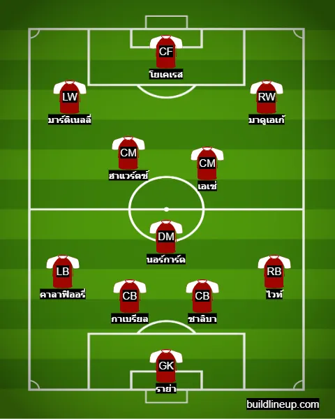 ในส่วนของแนวรุก โยเคเรส ยังคงเป็นหน้าเป้าเหมือนเดิม แต่ทางฝั่งซ้ายอาจใช้งาน กาเบรียล มาร์ติเนลลี่ ส่วนฝั่งขวา มาดูเอเก้ มีศักยภาพที่จะเล่นได้โดดเด่นไม่แพ้ ซาก้า เช่นกัน