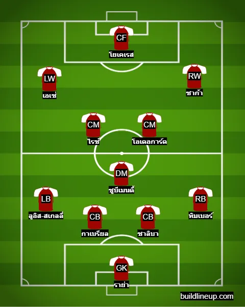 ด้วยการที่มีขุมกำลังเชิงลึกที่หลากหลาย นั่นทำให้ อาร์เตต้า สามารถโรเตชั่นทีมได้ โดยเขาอาจจะมีการปรับตำแหน่งฟูลแบ็กด้วยการใช้งาน ริคคาร์โด้ คาลาฟิออรี่ ทางฝั่งซ้าย และ เบน ไวท์ ยืนทางขวา ขณะที่ตรงกลางใส่ชื่อ นอร์การ์ด เป็นมิดฟิลด์ตัวรับ ส่วนด้านหน้าก็ใช้ ฮาแวร์ตซ์ กับ เอเซ่ คอยปั้นเกมบุก