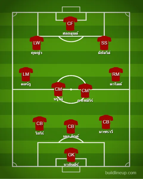 กองกลาง : ดีโอโก้ ดาโลต์, กาเซมีโร่, บรูโน่ แฟร์นันด์ส, แพทริค ดอร์กู