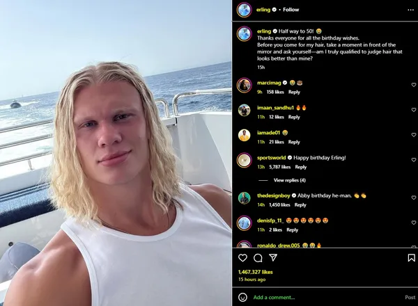เออร์ลิง ฮาลันด์ กองหน้า แมนเชสเตอร์ ซิตี้ ฉลองวันเกิดครบ 25 ปี พร้อมโพสต์สวนกลับคนชอบวิจารณ์ทรงผม บอกก่อนจะตัดสินคนอื่นให้ดูตัวเองก่อนดีพอหรือยัง