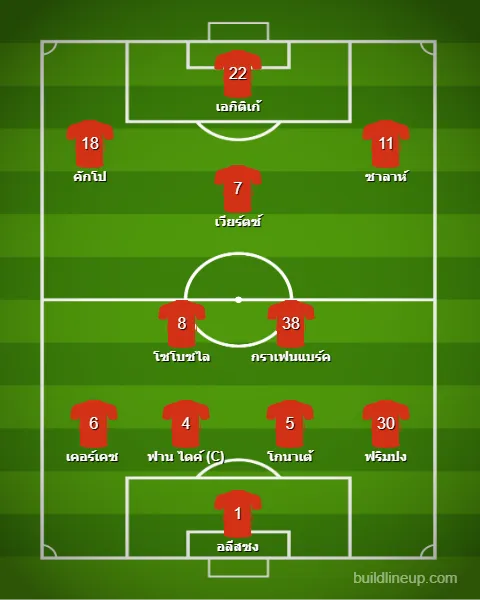 - แบ็กโฟร์ : เจเรมี ฟริมปง, อิบราฮิมา โกนาเต้, เฟอร์จิล ฟาน ไดค์, มิลอส เคอร์เคซ