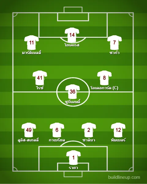 โยเคเรส หัวหอกตัวใหม่ของทีม ได้สตาร์ทตัวจริงแน่นอน ส่วนตัวรุกด้านขวา ซาก้า การันตีตัวจริงอยู่แล้ว ขณะที่ฝั่งซ้าย อาร์เตต้า น่าจะเลือกใช้งาน มาร์ติเนลลี่ ก่อนตัวใหม่อย่าง โนนี มาดูเอเก้