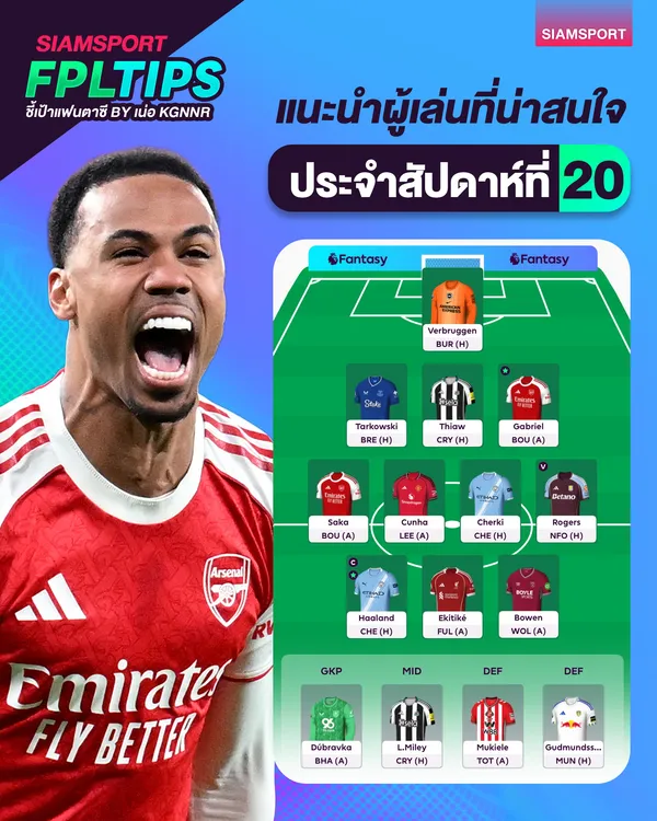 วิเคราะห์ FPL วีค 20 เปิดครึ่งฤดูกาลหลัง กาเบรียลคัมแบ็ก 15 แต้ม แมนฯ ซิตี้–อาร์เซนอลยังแกนหลัก แนะนำกัปตันฮาลันด์ และกลยุทธ์ชิปช่วงโปรแกรมถี่