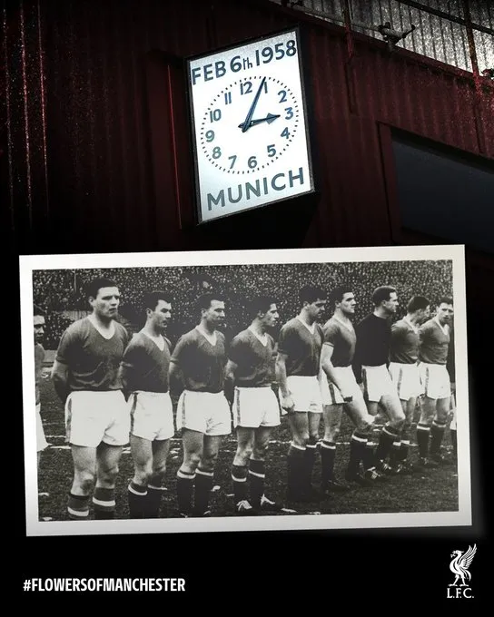 เพจอย่างเป็นทางการของ ลิเวอร์พูล ระบุข้อความว่า “เราขอส่งกำลังใจไปถึงแมนเชสเตอร์ ยูไนเต็ด ขณะที่เราร่วมรำลึกถึงเหตุการณ์โศกนาฏกรรมเครื่องบินตกที่มิวนิก ในวันครบรอบของเหตุการณ์ดังกล่าว” พร้อมติดแฮชแท็ก #FlowersOfManchester เพื่อสื่อถึงความเคารพและการรำลึกถึงผู้จากไป