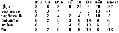 ญี่ปุ่น นำเป็นจ่าฝูง (20 แต้ม)