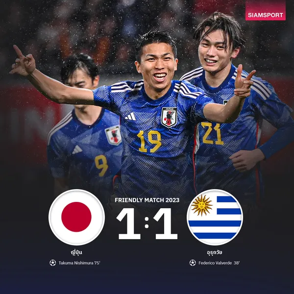 อย่างไรก็ตาม เฟเดริโก วัลเวร์เด้ โหม่งให้อาคันตุกะขึ้นนำ 1-0 ก่อนที่ครึ่งหลัง ทาคูมะ นิชิมูระ จะมายิงตีเสมอให้ญี่ปุ่น เป็น 1-1 พร้อมกับจบการแข่งขันไปด้วยสกอร์นี้