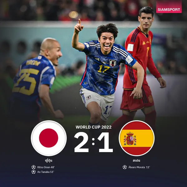 รูปเกมคล้ายๆ กับเยอรมัน คือญี่ปุ่น โดนนำก่อน แถมแทบจะเป็นฝ่ายตั้งรับฝั่งเดียว แต่ก็มาได้ ริสึ โดอัน กับ อาโอะ ทานากะ ยิงคนละประตูพา เดอะ บลู ซามูไร พลิกแซงชนะ 2-1 พร้อมเข้ารอบในฐานะแชมป์กลุ่ม อี อย่างภาคภูมิ