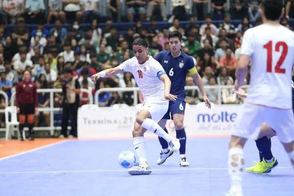 เริ่มเกมได้เพียงไม่กี่นาที ทีมไทยได้ประตูนำ 1-0 จากจังหวะเพรสซิ่งของ สราวุท ผลาพฤกษ์ ยิงเสียบเสาแรกเข้าไป แต่หลังจากนั้นอิหร่านเร่งเครื่องและตีเสมอในนาทีที่ 10 จาก เดรัคชานี ก่อนบวกเพิ่มอีก 2 ประตูจาก ฮอสเซน ซับซี่ นาทีที่ 14 และ ฮอสเซน ตาเยบี้ นาทีที่ 18 จบครึ่งแรกไทยตามหลัง 1-3