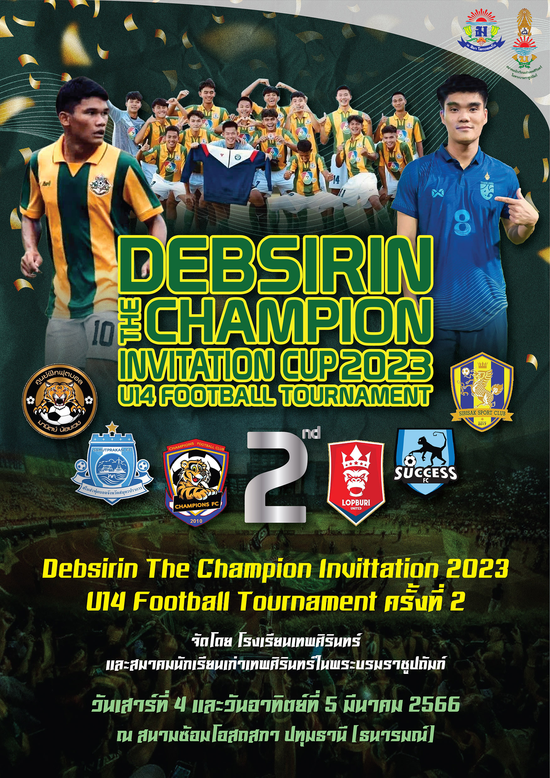 นายอนุชิต กุลวานิช อุปนายก(กีฬา) สมาคมนักเรียนเก่าเทพศิรินทร์ในพระบรมราชูปถัมภ์ เปิดเผยว่า สมาคมนักเรียนเก่าเทพศิรินทร์ และโรงเรียนเทพศิรินทร์ ร่วมกันจัดการแข่งขันฟุตบอลรายการพิเศษ "เทพศิรินทร์ เดอะ แชมเปี้ยนส์ อินวิเตชัน คัพ 2023 ยู 14 ทัวร์นาเมนต์" (Debsirin The Champion invitation Cup 2023 U14 tournament) ระหว่างวันที่ 4-5 มี.ค.2566 นี้ ที่สนามธนารมย์ โดยมีวัตถุประสงค์เพื่อส่งเสริมให้เยาวชนได้มีประสบการณ์ในการแข่งขันฟุตบอล และสรรหานักกีฬาฟุตบอลเข้าสู่ทีมฟุตบอลโรงเรียนเทพศิรินทร์เพื่อร่วมแข่งขันรายการต่างๆ