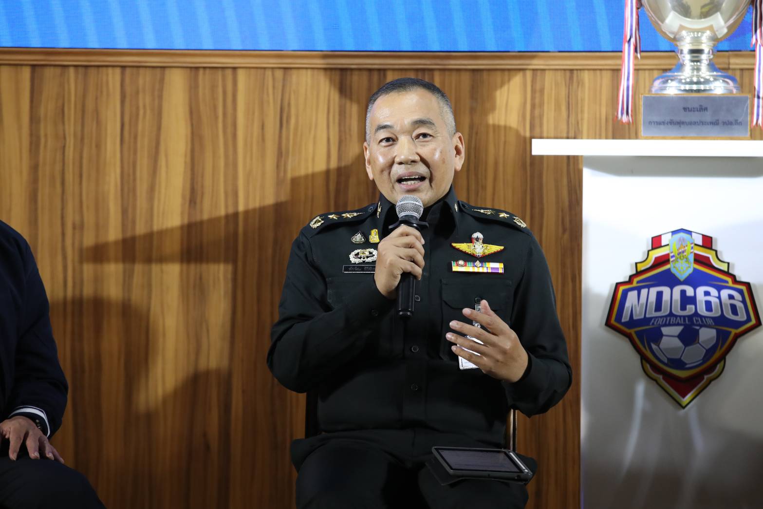 พล.ท.ทักษิณ สิริสิงห์ ผู้อำนวยการวิทยาลัยป้องกันราชอาณาจักร สถาบันวิชาการป้องกันประเทศ (วปอ.) เป็นประธานการแถลงข่าวการแข่งขันกีฬาฟุตบอลประเพณี วปอ.ลีก เพื่อสังคม ประจำปี 2567 ที่หอประชุมวิทยาลัยป้องกันราชอาณาจักร วปอ. ถ.วิภาวดีรังสิต เมื่อช่วงเย็นวันที่ 15 พ.ค.ที่ผ่านมา