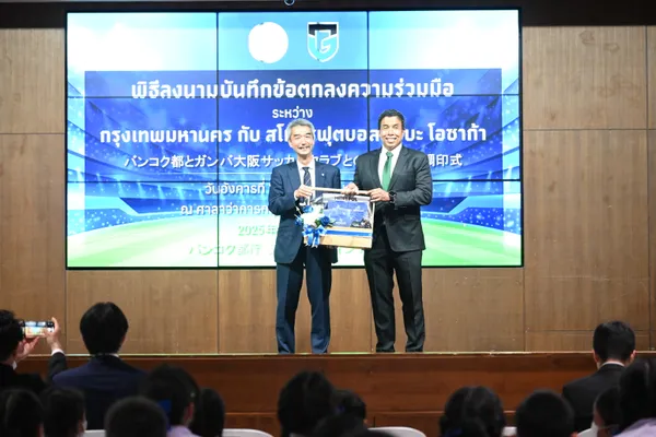 กทม. ร่วมพิธีลงนาม MOU กับสโมสรฟุตบอลกัมบะ โอซาก้า เพื่อพัฒนาทักษะฟุตบอลให้เยาวชนกรุงเทพฯ พร้อมใช้บุคลากรจาก J.League ถ่ายทอดหลักสูตรลูกหนังแบบมืออาชีพ