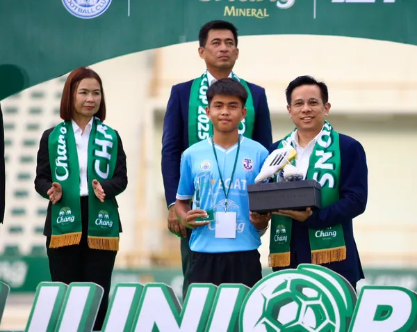 Chang Junior Cup 2025 รอบชิงแชมป์ประเทศไทย จัดการแข่งขันนัดชิงอันดับที่ 3 และนัดชิงชนะเลิศ เมื่อวันที่ 15 มิถุนายน 2568 ณ สนามอินทรีจันทรสถิตย์ มหาวิทยาลัยเกษตรศาสตร์ กรุงเทพฯ โดยมีคุณสุรพล อุทินทุ ผู้บริหารน้ำแร่ธรรมชาติตราช้าง, คุณแพทริค หอรัตนชัย ผู้อำนวยการ ผู้บริหารสายงานกิจการองค์กรประเทศไทย บริษัท ไทยเบฟเวอเรจ จำกัด (มหาชน) โดยน้ำแร่ธรรมชาติตราช้าง, คุณโชติรัฏฐ์ ศิริอัฐ ผู้แทนผลิตภัณฑ์น้ำแร่ธรรมชาติตราช้าง, คุณชลันดา ชอบจิตร ผู้อำนวยการกองบริหารงานและประเมินผลกีฬาอาชีพ สำนักงานคณะกรรมการกีฬาอาชีพ การกีฬาแห่งประเทศไทย, คุณเอกพล พลนาวี เลขาธิการสมาคมกีฬาฟุตบอลแห่งประเทศไทย ในพระบรมราชูปถัมภ์