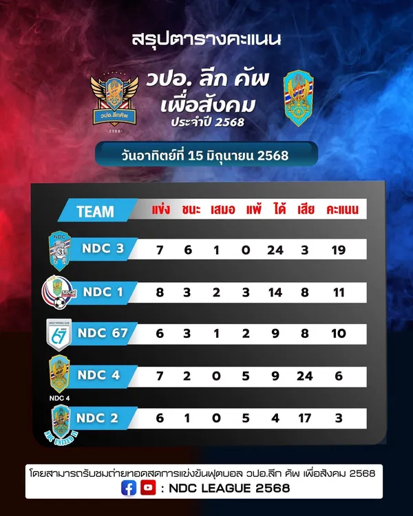 สามารถรับชมการถ่ายทอดสด และความเคลื่อนไหวได้ที่แฟนเพจ NDC league 2568