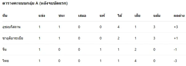 สถานการณ์ล่าสุด ทีมชาติไทย U17 พ่าย "อุซเบกิสถาน" 1-4 ในนัดแรก ขณะที่ "ซาอุดีอาระเบีย" เปิดหัวด้วยการเฉือนชนะ "จีน" 2-1 ส่งผลให้ทั้งสองทีมต้องการชัยชนะในเกมนี้เพื่อลุ้นผ่านเข้าสู่รอบต่อไป
