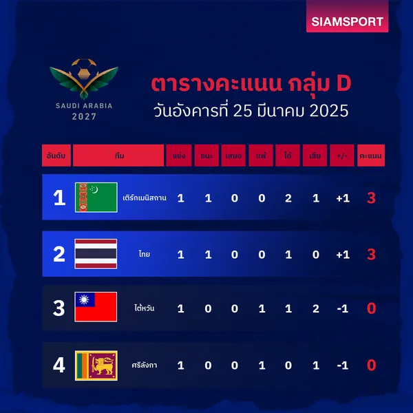 ทีมชาติไทย เตรียมลงทำศึกฟุตบอล เอเชียน คัพ 2027 รอบคัดเลือกรอบสาม นัดที่ 2 ด้วยการบุกเยือน เติร์กเมนิสถาน วันที่ 10 มิถุนายน 2568 ซึ่งนับเป็นแมตช์สำคัญในการลุ้นตั๋วเข้าสู่รอบสุดท้ายที่ประเทศซาอุดิอาระเบีย