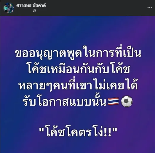 “ขออนุญาตพูดในการที่เป็นโค้ชเหมือนกันกับโค้ชหลายๆคนที่ไม่เคยได้รับโอกาสแบบนั้น โค้ชโคตรโง่!!”