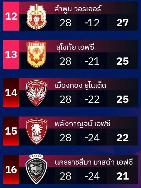 • สถานะ: 28 นัด | 27 แต้ม (ยิง 34 เสีย 36 / ผลต่างประตู -12)