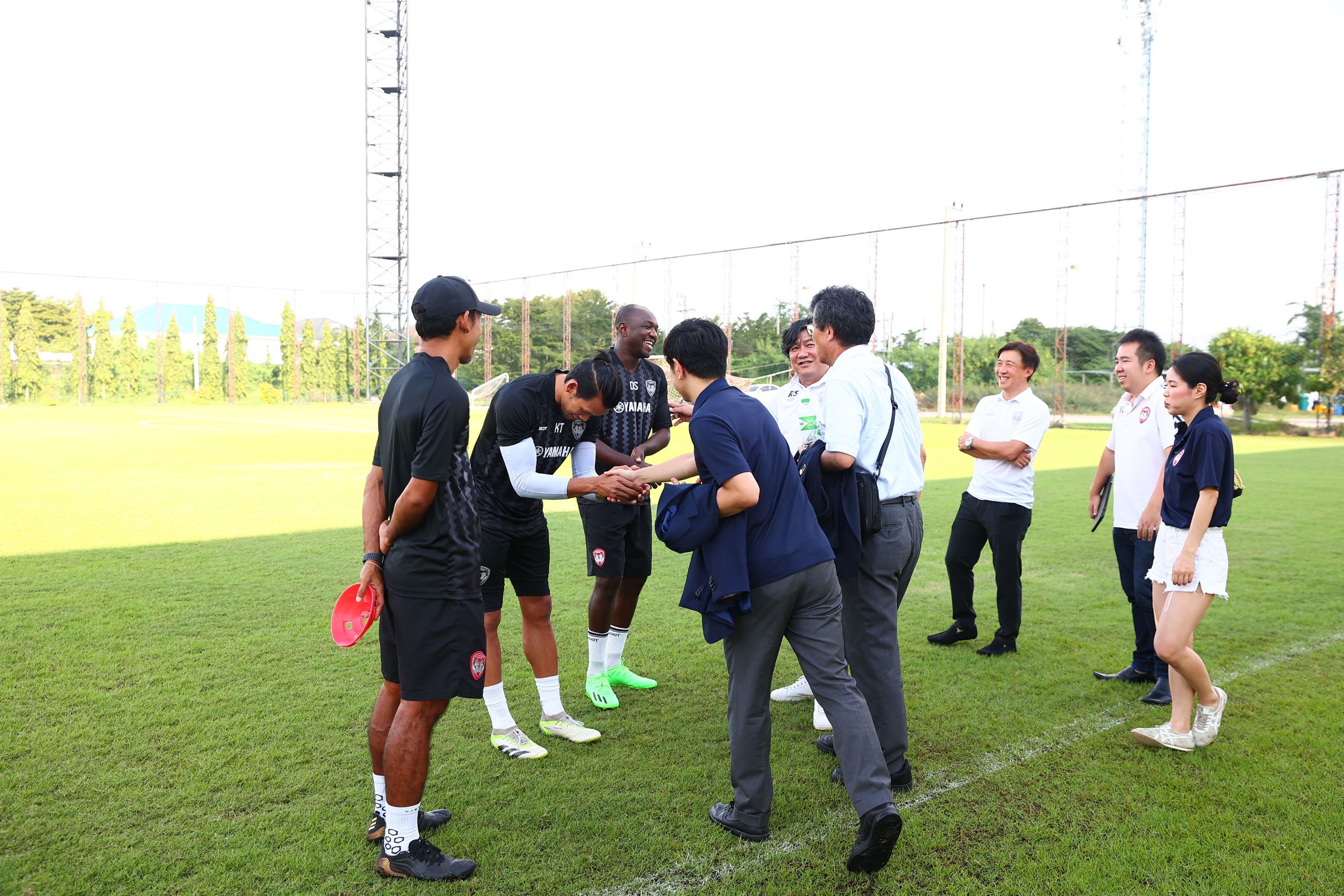 มิสเตอร์ มาโกโตะ ทากูชิ (Mr. Makoto Taguchi) ประธานสโมสร อุราวะ เรด ไดมอนด์ส และมิสเตอร์ เคนซากุ ยาจิมะ (Mr.Kensaku Yajima) ผู้จัดการทั่วไป เดินทางมาเยี่ยมชม ธันเดอร์โดม สเตเดี้ยม โดยได้รับการต้อนรับจากคุณระวิ โหลทอง ประธานกิตติมศักดิ์ เมืองทอง ยูไนเต็ด, คุณ วิลักษณ์ โหลทอง ประธานสโมสร, คุณรณฤทธิ์ ซื่อวาจา ผู้อำนวยการสโมสร และคุณขัตติยพงศ์ สุวรรณสาร คุณวสุ โหลทอง รวมทั้งพูดคุยเกี่ยวกับการร่วมกันพัฒนาในด้านต่างๆ