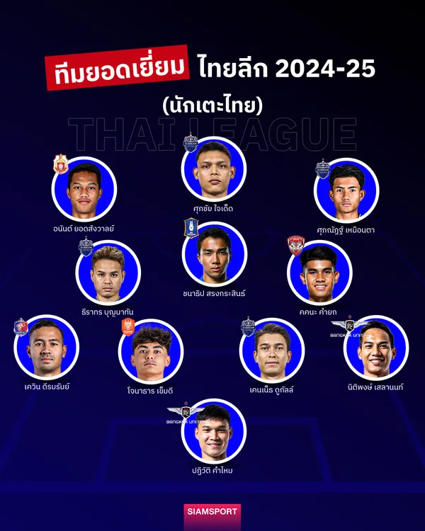 สรุปทีมยอดเยี่ยม ไทยลีก 2024-25 เฉพาะนักเตะไทยในระบบ 4-3-3 โดยมีชื่อแข้งทีมชาติไทยคับคั่งนำโดย ศุภชัย ใจเด็ด, ชนาธิป สรงกระสินธ์, ธีราทร บุญมาทัน รวมถึงดาวรุ่ง คคนะ คำยก และแข้งแรงจัดอย่าง อนันต์ ยอดสังวาลย์ จาก ลำพูน วอร์ริเออร์