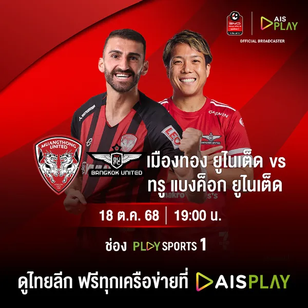 | 19.00 น. | เมืองทอง ยูไนเต็ด พบ ทรู แบงค็อก ยูไนเต็ด | AIS PLAY SPORTS1 | |