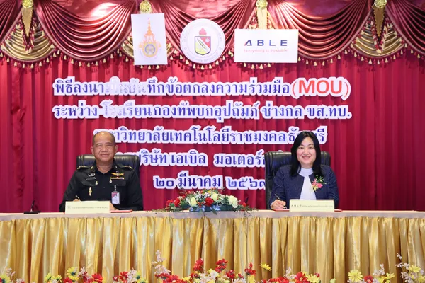 โดยภายในพิธีมี การลงนามบันทึกข้อตกลงความร่วมมือ (MOU)ระหว่างบริษัท เอเบิล มอเตอร์ส ปากเกร็ด จำกัด และ โรงเรียนกองทัพบกอุปถัมภ์ ช่างกล ขส.ทบ. โดยเป็นการบันทึกข้อตกลงความร่วมมือทางวิชาการ ผ่านการจัดการเรียนการสอนหลักสูตรประกาศนียบัตรวิชาชีพ สาขาวิชาช่างยนต์ สาขาวิชา ยานยนต์ไฟฟ้า และประกาศนียบัตรวิชาชีพชั้นสูง สาขาวิชาเทคนิคเครื่องกล โดยเปิดโอกาสให้นักศึกษาได้ฝึกปฏิบัติงาน ในสถานประกอบการ ส่งเสริมการเรียนรู้จากประสบการณ์จริง เพื่อสอดรับกับวัตถุประสงค์ในการประสานความร่วมมือในการจัดการอาชีวศึกษา เพื่อผลิตและพัฒนากำลังคนให้สอดคล้องกับพระราชบัญญัติการศึกษาแห่งชาติ ตามนโยบายของรัฐบาล และความต้องการของสถานประกอบการอย่างยั่งยืน