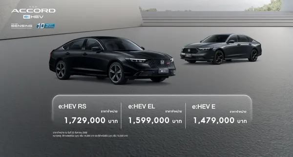 ฮอนด้า ออโตโมบิล (ประเทศไทย) จำกัด ได้เปิดตัว Honda Accord e:HEV รุ่นปรับปรุงใหม่ พร้อมราคาเริ่มต้นใหม่ที่ 1,479,000 บาท ซึ่งมีราคาถูกลงจากรุ่นเดิม และเพิ่มฟีเจอร์ใหม่ๆ เข้ามาเพื่อตอบโจทย์ลูกค้าให้คุ้มค่ายิ่งขึ้น