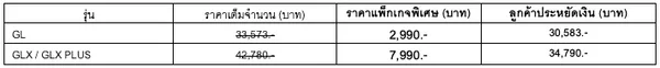 รุ่น GLX PLUS ราคา 799,000 บาท