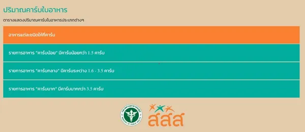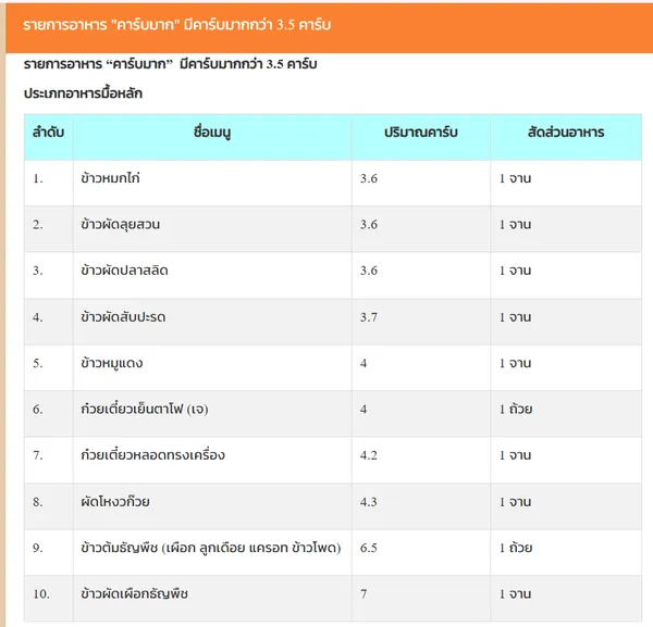 ตารางปริมาณคาร์บในอาหาร ตัวช่วยบริหารคาร์บในแต่ละวัน