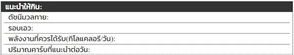 🗹 พลังงานที่ควรได้รับ: (กิโลแคลอรีต่อวัน)