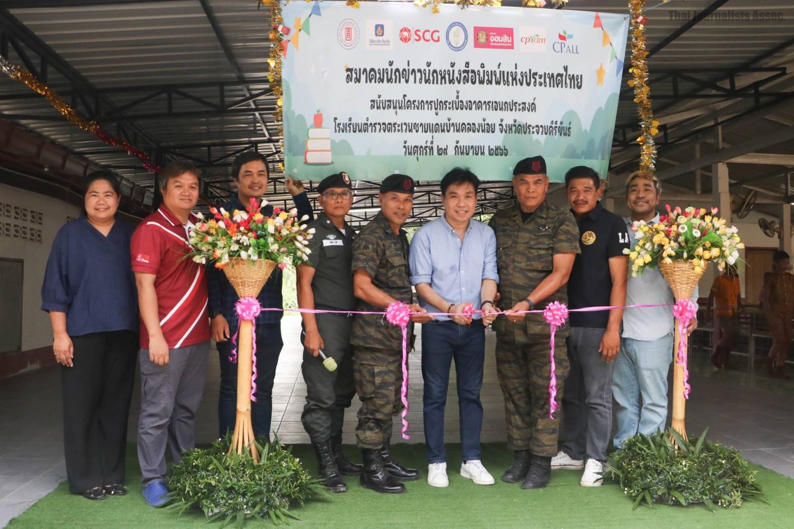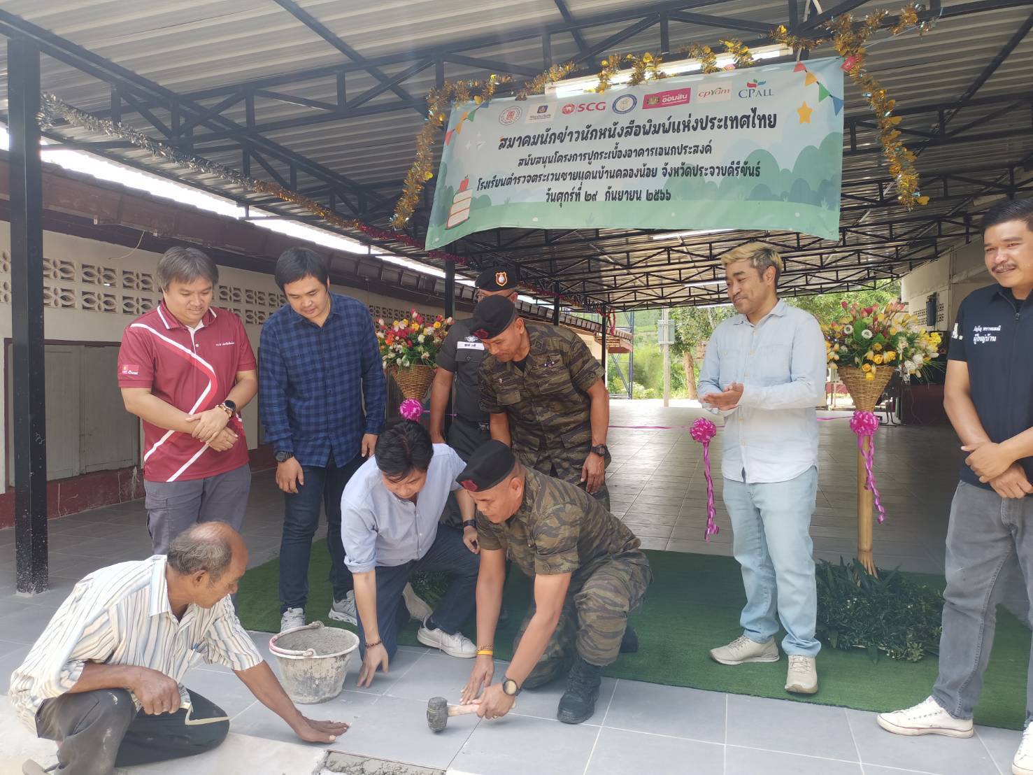 สมาคมนักข่าวนักหนังสือพิมพ์ฯ ร่วมกับภาคเอกชน 6 องค์กร สนับสนุนปูพื้นกระเบื้องอาคารเอนกประสงค์แก่ ร.ร.ตชด.บ้านคลองน้อย เพื่อการเรียนรู้ให้เกิดประโยชน์สูงสุด
