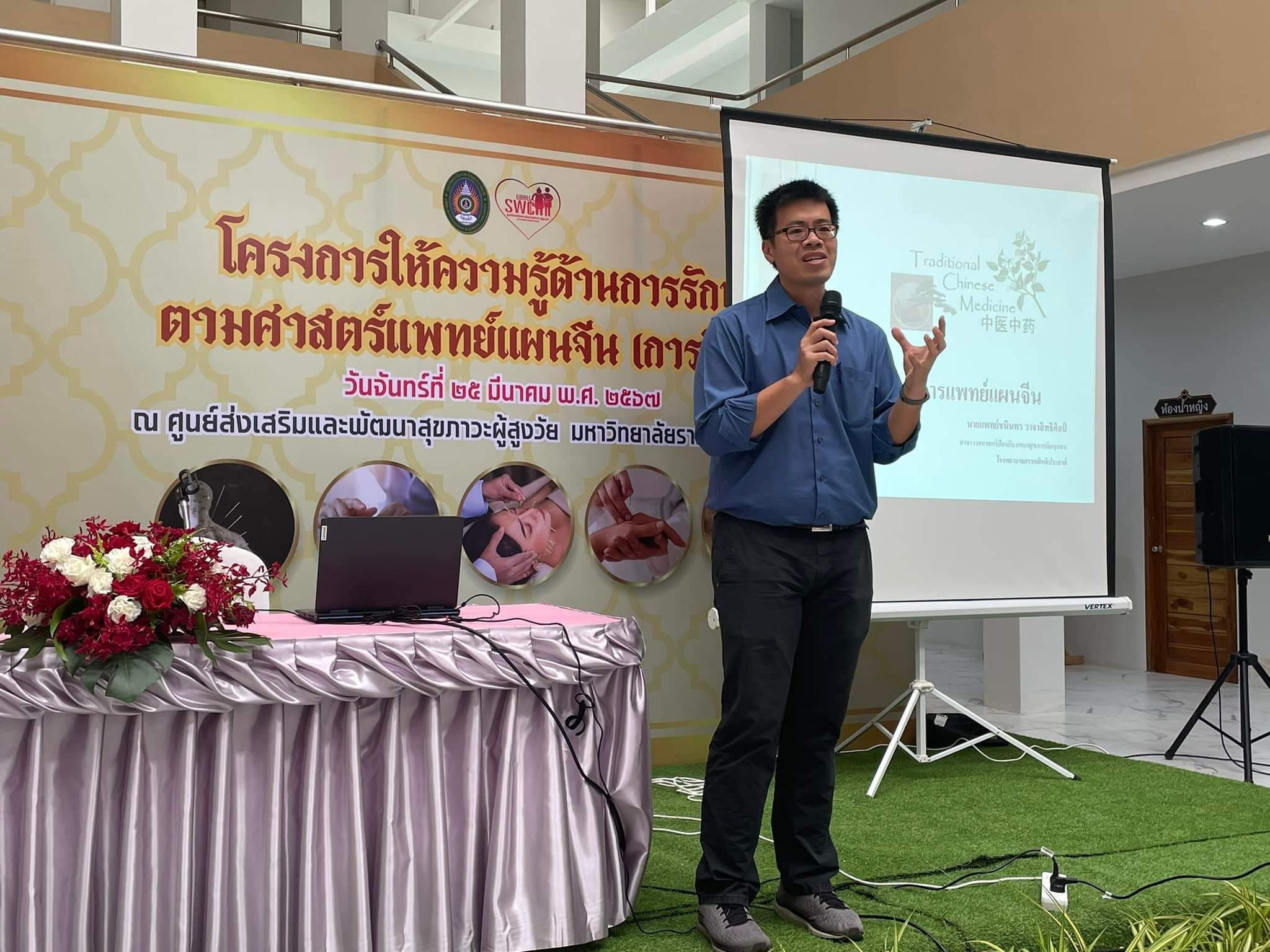 พร้อมกันนี้ยังมีการสาธิตการให้บริการฝังเข็มการรักษาตามศาสตร์แพทย์แผนจีน โดย นายแพทย์ชนินทร วาจาสิทธิศิลป์ นายแพทย์ชำนาญการ กลุ่มงานการแพทย์แผนไทยและการแพทย์ ทางเลือก โรงพยาบาลสรรพสิทธิประสงค์อุบลราชธานี ซึ่งภายหลังจากนี้คณะแพทย์แผนไทยและแพทย์ทางเลือก ผู้กำกับดูแลคลินิกฝังเข็ม จะดำเนินการเกี่ยวกับแพทย์และบุคลากรที่จะมาให้บริการประจำศูนย์และจะเปิดให้บริการจริงเร็ว ๆ นี้ ติดตามข้อมูลได้ที่เพจ ศูนย์ส่งเสริมและพัฒนาสุขภาวะผู้สูงวัย มรภ.อุบลราชธานี