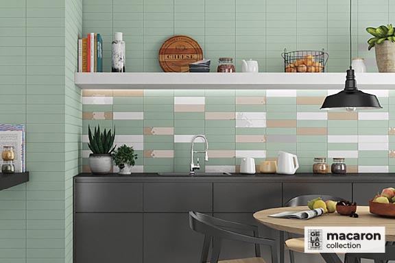 3.Macaron Collection – (Delightful Artistry and Sweet Flavors) กระเบื้องลายน่ารักสีพาสเทล ช่วยเพิ่มความหวานละมุน สร้างบรรยากาศพื้นที่ได้เหมือนรสชาติของขนามาการอง