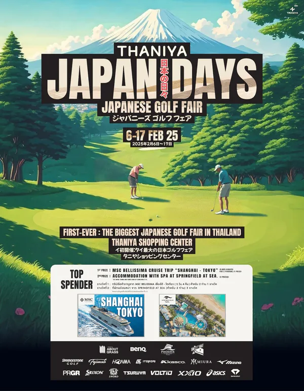 วงการกอล์ฟเมืองไทยคึกคัก! เมื่อศูนย์การค้าธนิยะ สีลม จัดงาน "JAPANESE GOLF FAIR" ส่วนหนึ่งของงาน "THANIYA JAPAN DAYS" รวบรวม 15 แบรนด์กอล์ฟชั้นนำจากญี่ปุ่นไว้ในที่เดียว พร้อมผู้เชี่ยวชาญจากแบรนด์ต่างๆ มาคอยให้ข้อมูลเชิงลึก เพื่อนักกอล์ฟทุกระดับฝีมือที่มีความหลงใหลหรือสนใจในตัวอุปกรณ์กอล์ฟสัญชาติญี่ปุ่น เริ่มตั้งแต่วันนี้ - 17 กุมภาพันธ์ 2568 ณ ลานกิจกรรม ชั้น G ศูนย์การค้าธนิยะ ตั้งแต่เวลา 10:00-22:00 น.