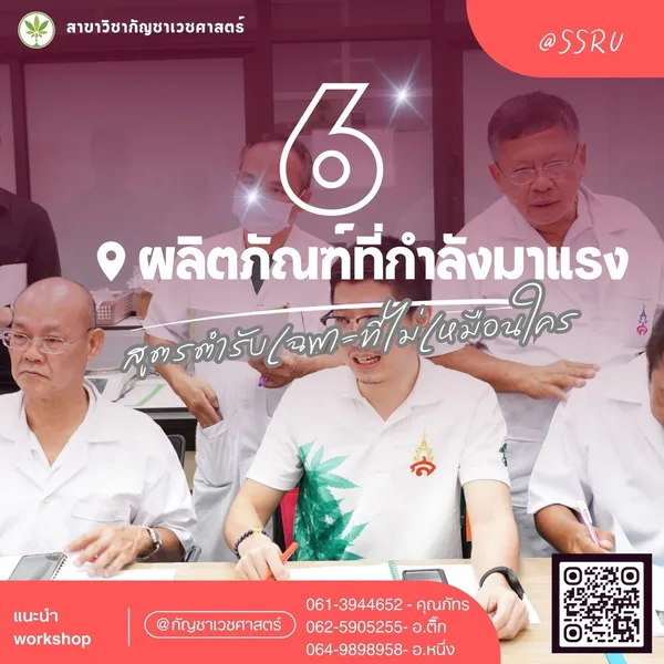 สาขาวิชากัญชาเวชศาสตร์ วิทยาลัยสหเวชศาสตร์ มหาวิทยาลัยราชภัฏสวนสุนันทา เปิดอบรมเชิงปฏิบัติการ นวัตกรรมผลิตภัณฑ์กัญชา รุ่น 2 หลักสูตรเข้มข้น 3 วัน (18 ชั่วโมง) เรียนรู้การทำ 6 ผลิตภัณฑ์กัญชาคุณภาพ