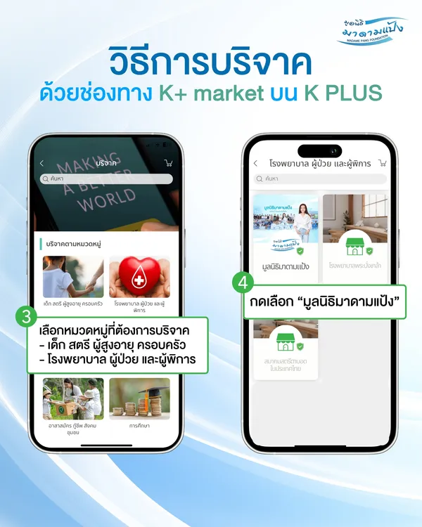 วิธีการบริจาค ด้วยช่องทาง K+ market บน K PLUS
