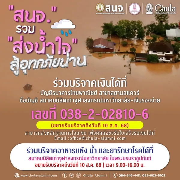 สนจ. ขอขอบคุณผู้ร่วมบริจาคทุกท่านที่เป็นส่วนหนึ่งของภารกิจสำคัญ พร้อมขยายเวลารับบริจาคเงินและสิ่งของจำเป็นจนถึงวันที่ 10 สิงหาคม 2568 โดยสามารถร่วมสมทบทุนผ่านบัญชี: