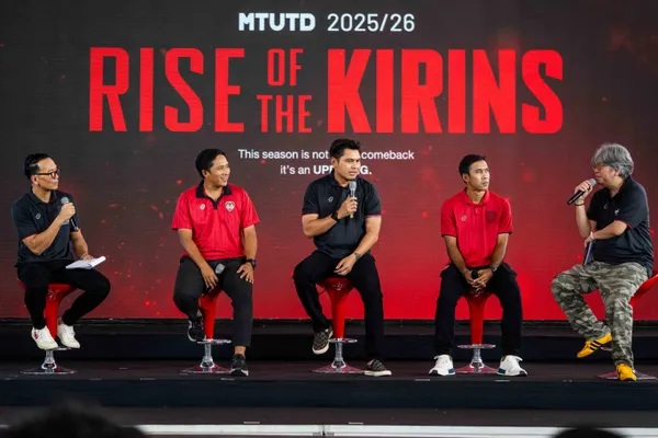 นายพงศธร เอื้อมงคลชัย ประธานกรรมการบริหาร นายภาณุพล กิตติคำรณ ผู้จัดการใหญ่ด้านการค้า นายอุกฤษณ์ ภาควิวรรธ รองผู้จัดการใหญ่ด้านวางแผนการค้า และการตลาด นายจิระภัทร สายเพชร ผู้จัดการทั่วไปฝ่ายการตลาด และสนับสนุนการตลาด บริษัท ไทยยามาฮ่ามอเตอร์ จำกัด ถ่ายภาพร่วมกับนายวิลักษณ์ โหลทอง ประธานสโมสรเมืองทอง ยูไนเต็ด นายรณฤทธิ์ ซื่อวาจา ผู้อำนวยการสโมสรเมืองทอง ยูไนเต็ด พร้อมด้วยแข้งดัง ในงานแถลงข่าวเปิดตัวสโมสรเมืองทอง ยูไนเต็ด ภายใต้แคมเปญ "RISE of the KIRIN" กิเลนผยอง...ทะยานสู่ความสำเร็จยุคใหม่