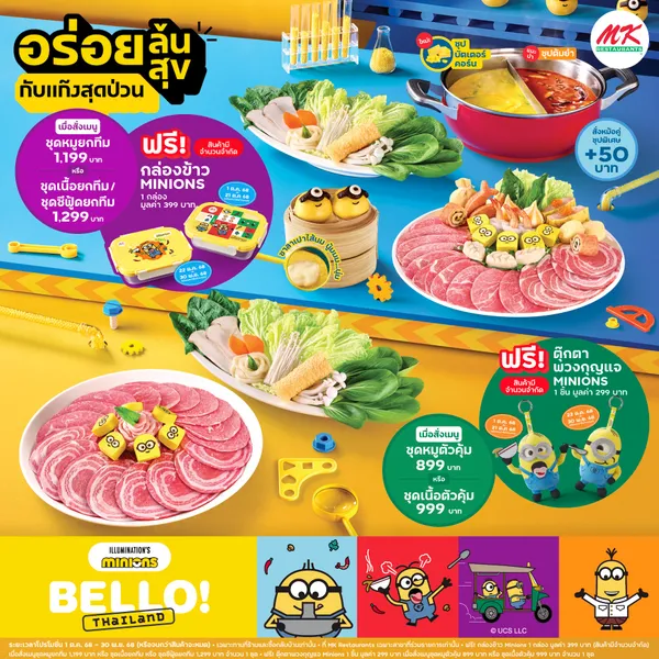 MK Restaurants สร้างความฮือฮาครั้งใหญ่ในวงการอาหารและคาแรกเตอร์ เมื่อประกาศจับมือกับ “มินเนี่ยน” (Minions) คาแรกเตอร์ดังระดับโลก ภายใต้แคมเปญ “อร่อยล้นสุขกับแก๊งสุดป่วน” เพื่อสร้างสรรค์ประสบการณ์ใหม่ในการรับประทานอาหาร พร้อมตอกย้ำภาพลักษณ์แบรนด์ให้สนุก สดใส และเข้าถึงง่ายยิ่งขึ้น