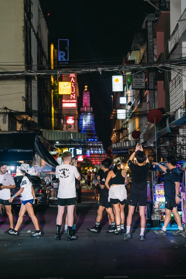 นักวิ่งที่เข้าร่วมกิจกรรมถูกแบ่งออกเป็น 2 ทีม เพื่อออกวิ่งสำรวจเส้นทางที่เต็มไปด้วยแลนด์มาร์คและแสงสีที่สวยงามในยามค่ำคืนของกรุงเทพฯ โดยตลอดเส้นทางการวิ่ง แถบสะท้อนแสงบนรองเท้าวิ่ง Adizero Evo SL Reflective ได้ช่วยเติมเต็มความสนุกสนานในการวิ่ง และเผยความโดดเด่นของรองเท้าได้อย่างชัดเจน
