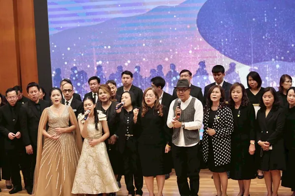 บรรยากาศภายในงานเริ่มต้นด้วยความซาบซึ้งจากการขับร้อง 3 บทเพลงปลุกจิตสำนึก ได้แก่