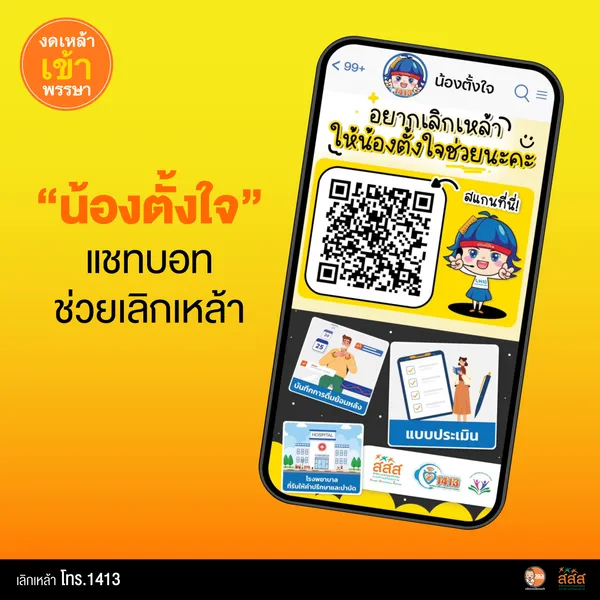 ขณะเดียวกัน สำนักงานกองทุนสนับสนุนการสร้างเสริมสุขภาพ (สสส.) ก็ได้พัฒนาการให้บริการ ผ่านระบบแชทบอท แอปพลิเคชันไลน์ ชื่อ “น้องตั้งใจ” ให้คำปรึกษาและติดตามปัญหาการดื่มผ่านสมาร์ทโฟน ที่สะดวก รวดเร็วขึ้นและขยายประเด็นให้บริการ โดยเพิ่มนักจิตวิทยาให้คำปรึกษาเรื่องการเลิกสิ่งเสพติด ทุกชนิด เพื่อหนุนเสริมระบบงานบำบัดผู้มีปัญหาการดื่มเครื่องดื่มแอลกอฮอล์และสิ่งเสพติดทุกชนิด