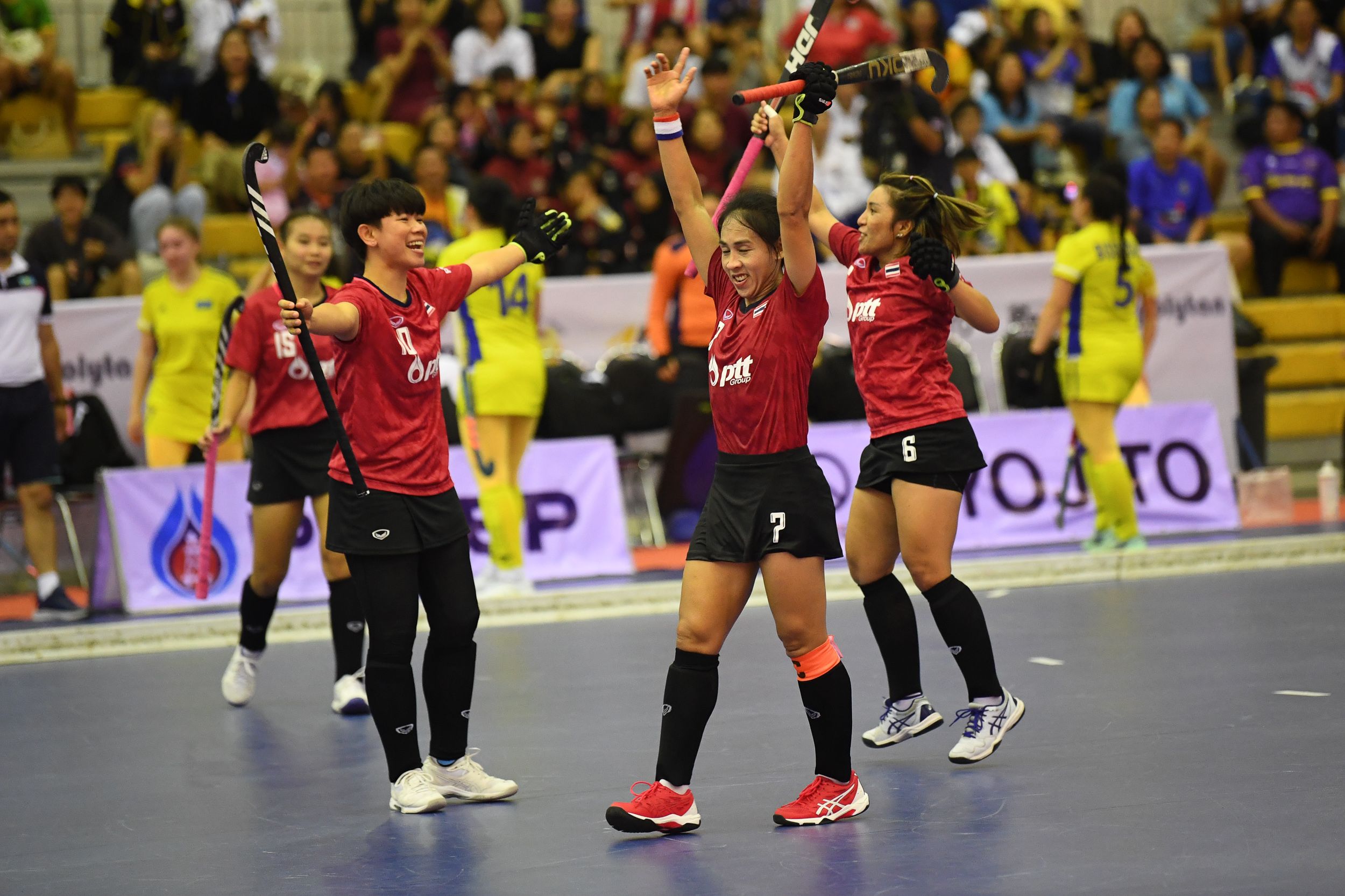 พล.ร.อ.จีรพัฒน์ ปาณสกุล อุปนายกสมาคมกีฬาฮอกกี้แห่งประเทศไทยในฐานะผู้จัดการทีมเผยว่า สำหรับเกมแรกทีมไทยลงสนามพบกับสิงคโปร์ โชว์ฟอร์มได้เหนือกว่าจนเอาชนะไปได้ 8-0 และนัดที่สองทีมไทยเอาชนะอินโดนิเซีย 7-1 สำหรับการเล่นในนัดที่สุดท้ายล้มทีมชาติกัมพูชา 5-1 ผ่านเข้าไปเล่นรอบรองชนะเลิศพบกับคู่ปรับมาเลเซียนซึ่งทีมไทยสามารถเอาชนะไปได้ 2-1 ผ่านเข้ารอบชิงชนะเลิศพบกับคาซัคสถาน