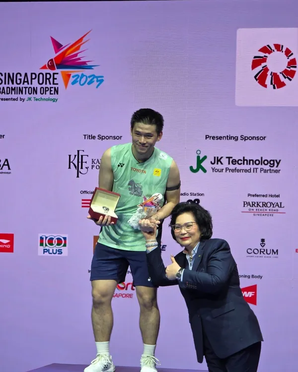 “วิว” กุลวุฒิ วิทิตศานต์ นักแบดมินตันชายเดี่ยวทีมชาติไทย คว้าแชมป์รายการ สิงคโปร์ โอเพ่น 2025 มาครองได้อย่างสมศักดิ์ศรี หลังโชว์ฟอร์มร้อนแรง ตบชนะ ลู่ กวางซู จากจีน 2 เกมรวดในรอบชิงชนะเลิศ พร้อมฉลองการขึ้นครอง มือ 1 โลก อย่างเป็นทางการในการประกาศอันดับ BWF วันอังคารที่ 3 มิถุนายนนี้